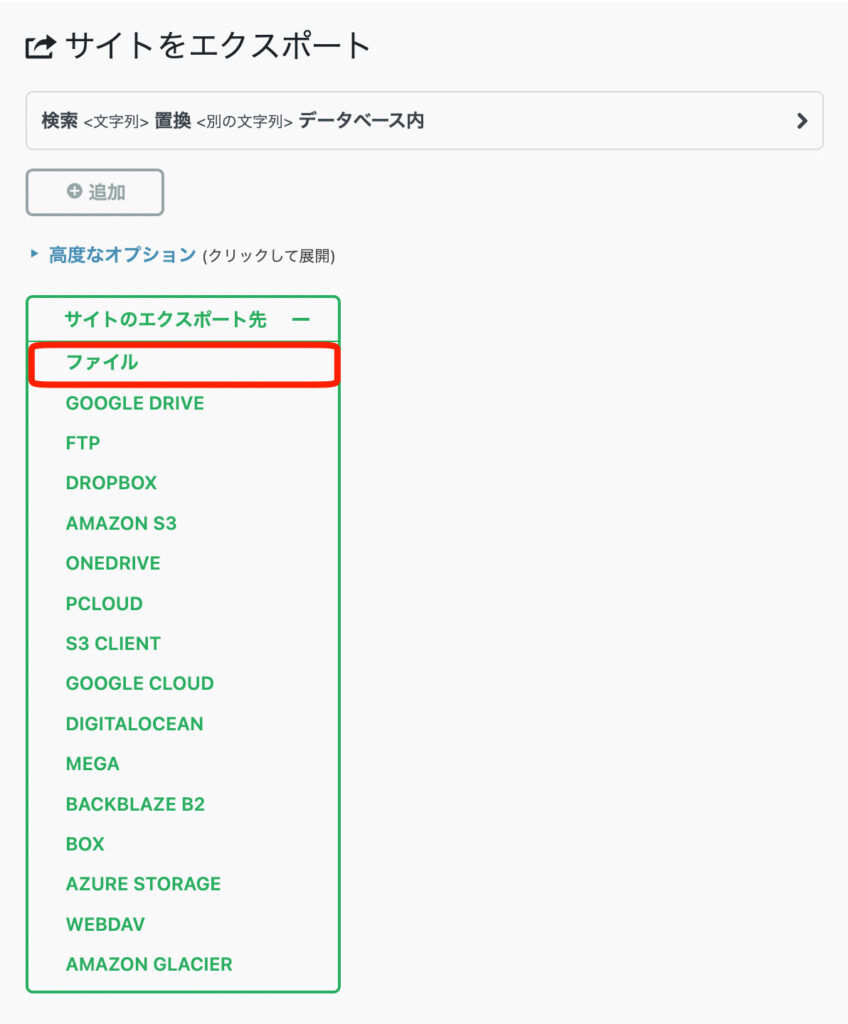 サイトのエクスポート先に関しては「ファイル」を選択。