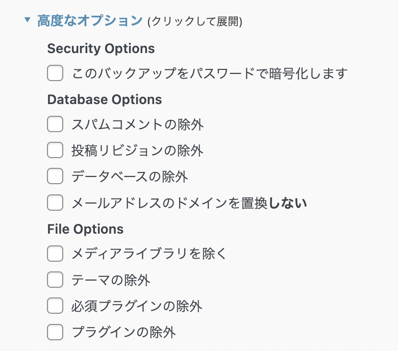 例えば、メディアの項目にある画像や動画などをエクスポートしたくない場合は、「メディアライブラリを除く」を選択することで該当項目を除外することができます。