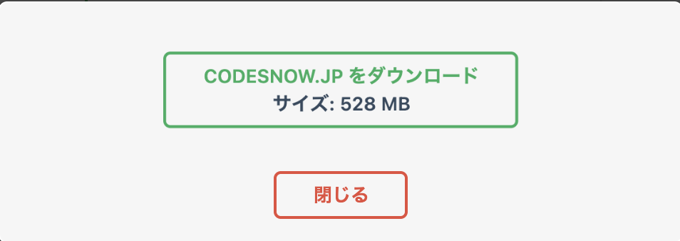 すると、(ドメイン名)をエクスポート」という画面が出てくるので、クリックします。
