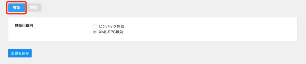 無効にしている人は有効に切り替え、「XML-RPC無効」を選択して保存しましょう。
