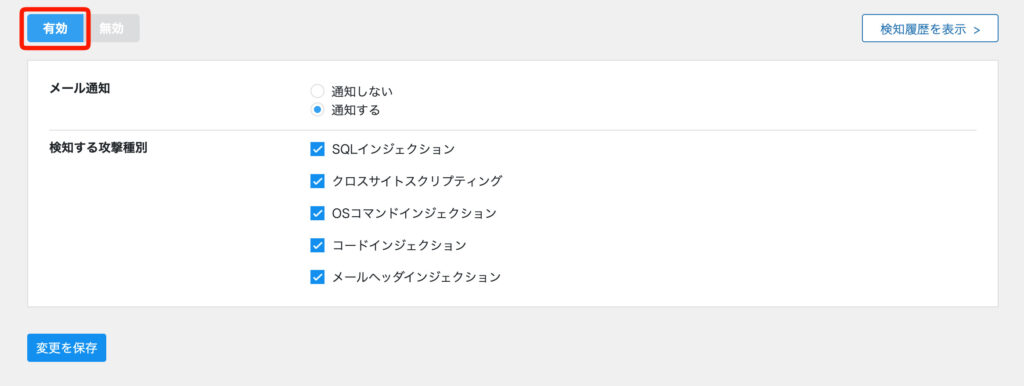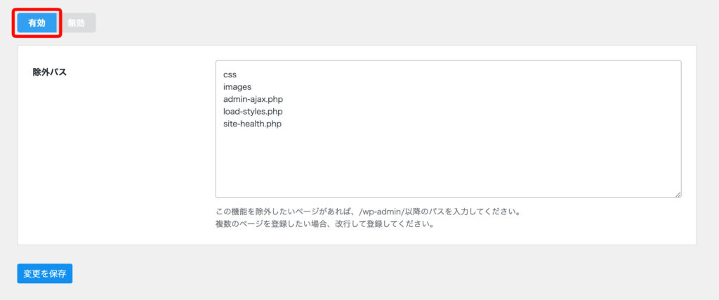 設定方法は簡単で、「有効」に切り替えて変更を保存するだけ。