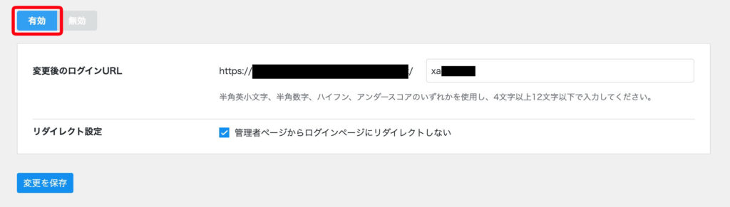 今まで管理画面にログインしたことがない、悪意のある第三者をログインページにアクセスさせたくない場合は有効にしておきましょう。