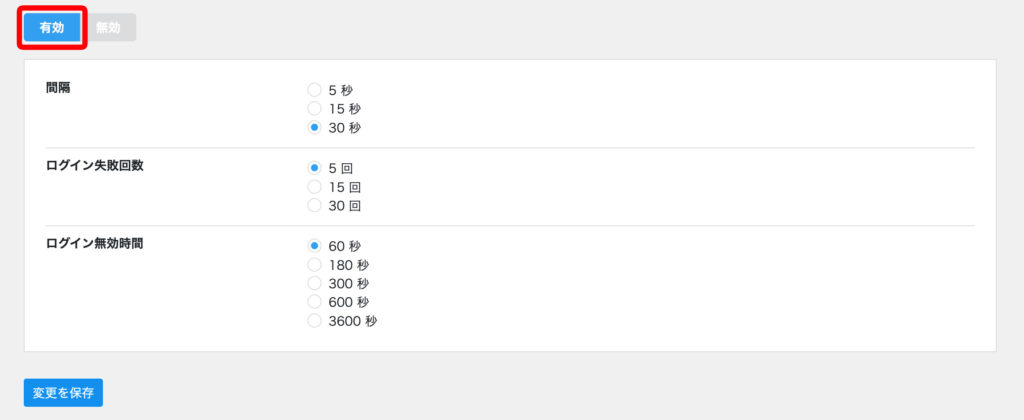 • ログインの無効化時間は何秒にするか