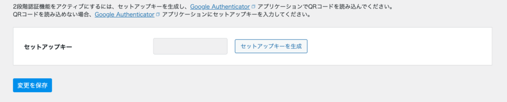 2段階認証機能を利用するには、CloudSecure WP Security側でセットアップキーというものを作成し