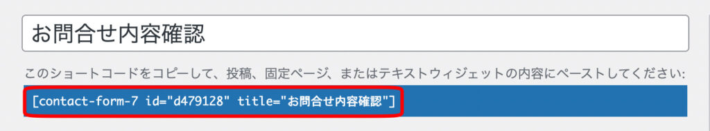 最後に内容確認画面・送信完了画面のフォーム用の固定ページを作り、内容確認画面の方にはショートコードを貼り付けましょう。