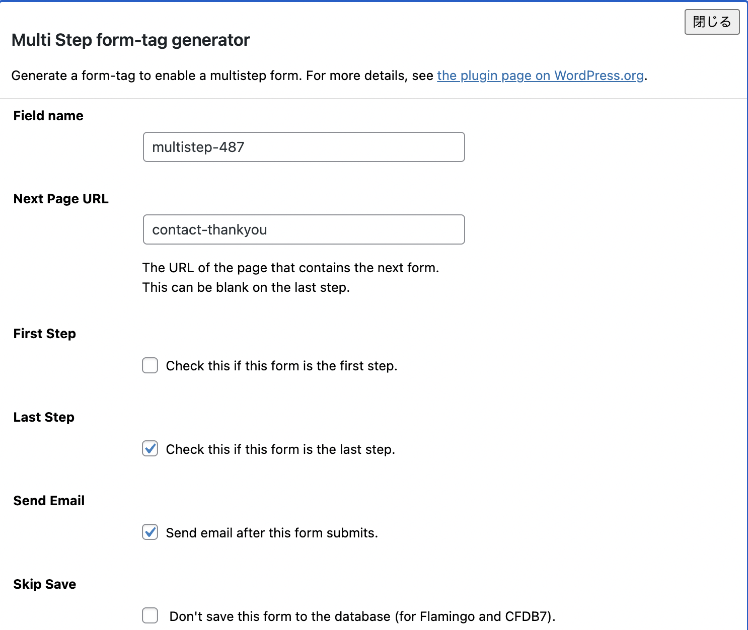 「Contact Form 7 Multi-Step Forms」を利用して、内容確認・送信完了画面を表示するステップとしては