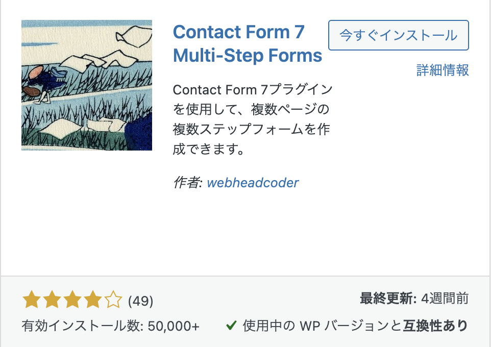 実際に内容確認画面・送信完了画面を作成する前に、まずは下準備として「Contact Form 7 Multi-Step Forms」をインストール・有効化しましょう。