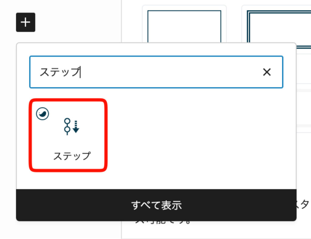 編集画面左上の「+」から「ステップ」と検索してもOK!
