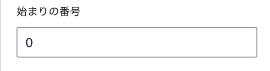「始まりの番号」というところの文字は、デフォルトでは0になっていますが、ここの数字を調整することによって好きな番号から始めることができます(0の場合は1から始まります)。