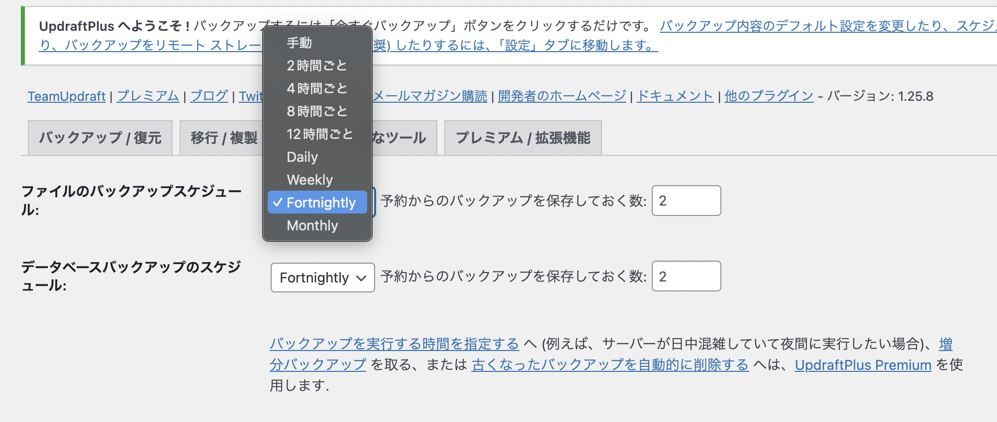自動でバックアップを取るには、設定にタグを合わせます(Fortnightlyは隔週という意味)。